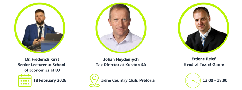 Whether you’re navigating client tax strategies, managing risk, or leading financial decision-making, this session will equip you with timely insights from three leading experts: Tax specialists Johan Heydenrych and Ettiene Retief, and Dr. Frederich Kirst -Senior Lecturer at School of Economics at UJ. As the Budget Speech unfolds, our experts will decode its contents and provide clear, practical commentary.
